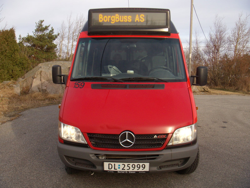 Minibussen jeg har kjørt i dag har også egen skiltkasse, slik som våre vanlige (store) busser, noe vi ikke har på vår vanlige hvite minibuss på Hvaler. Jeg kunne selvfølgelig ha skiltet minibussen i dag med henholdsvis Vesterøy, Spjær eller Skjærhalden, men siden vi vanligvis ikke gjør dette, lot jeg være. I skiltkassa har det derfor vært litt egenreklame i dag, «BorgBuss AS».