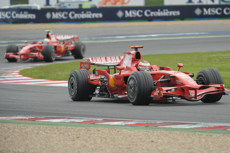 Kimi Raikkonen startet fra pole under dagens Frankrike Grand Prix på Magny-Cours-banen. Rett bak seg hadde han teamkollega Felipe Massa og Fernando Alonso. I starten av løpet falt Fernando Alonso raskt to plasser bak mens Jarno Trulli og Heikki Kovalainen avanserte. Fernando Alonso hadde rett og slett en dårlig start i dag. Kimi Raikkonen dro ifra med Felipe Massa på slep. Disse to Ferrari-førerne så ut til å kunne dra ganske lett ifra resten av feltet. Allerede på den første runden hadde Lewis Hamilton en helt vill forbikjøring som endte med at han måtte krysse gresset med alle fire hjulene.