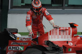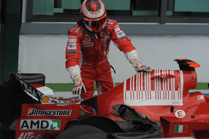 Uten motstand i eksosen mistet Kimi Raikkonen mesteparten av kreftene i hans Ferrari til tider, men plutselig var de tilbake igjen. Men Felipe Massa hadde overhodet ingen problemer med å passere Kimi Raikkonen når han hadde tatt igjen forspranget Kimi Raikkonen hadde opparbeidet seg. Det så lenge ut til at det var liten sjanse for at Kimi Raikkonen skulle kunne klare å fullføre med hans ødelagte Ferrari. Eksosrøret hang og slang bak på bilen og det ble raskt spekulert i om han ville bli svartflagget av sikkerhetsmessige årsaker. Men det ble han vist ikke. Om det var fordi det rett og slett er en Ferrari vi snakker om, eller om dette ikke anses for å være en sikkerhetsrisiko, vet jeg ikke. På ett senere tidspunkt så vi en reprise på når denne eksosrørdelen løsnet og fløy avgårde i luften.
