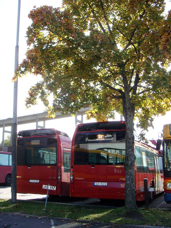 Buss #167 og #177 er begge av typen Volvo 7700 og er en lavgulva buss igjennom hele bussen. LE (low entry, eller lav entrè som det heter på norsk) har bare lavt gulv til og med den doble midtdøra. Så er det en trapp opp til «normal» høyde i resten av bussen. Når jeg kommer til Havnekontoret på Øra har jeg som vanlig noen minutter til overs, da benytter jeg anledningen til å ta noen bilder av bussen, både innvendig og utvendig. Jeg fikk også tatt noen bilder av meg selv foran og ved siden av bussen. Underveis tar jeg også noen bilder når jeg har stopp på holdeplasser og lignende. Når jeg returnerer fra Havnekontoret skal jeg også innom gamlebyen, da stopper jeg også et par ganger for å ta noen bilder fra «inngangen» til gamlebyen. Jeg hadde ingen passasjerer i bussen på dette tidspunktet, så det var nok ingen som lurte på hva som skjedde. Prøver selvfølgelig å ikke la dette gå ut over passasjerene på noen måte. Men når jeg allikevel har en stopp på en holdeplass, har det selvfølgelig ikke noe å si fra eller til for passasjerene om jeg tar opp kameraet fra lomma og knipset et bilde.