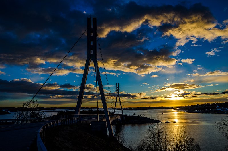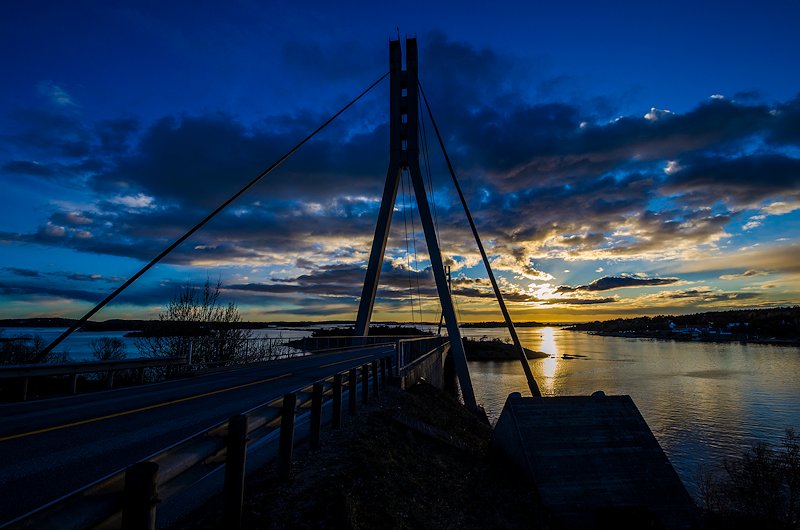 Neste stopp etter Glufsa og Tankodden var Puttesundbrua. En bru jeg har tatt bilder av utallige ganger. Og den eneste grunnen til at Puttesundbrua har blitt så fotogen er nettopp at den ble «hengt opp» for å redde brua fra å falle sammen i 2002. Det gjør selvfølgelig heller ikke noe at man har «inngangen til Hvaler» som bakgrunn, med øyer, vann og ofte en utrolig fantastisk himmel ved solnedgang! Det var to andre som også tok bilder av Puttesundbrua denne kvelden. Ikke at jeg tok meg tid til å veksle noen ord med dem, jeg var på «gjennomreise» for å få tatt bilder på flere steder med det fantastiske lyset denne kvelden! Mulig jeg var litt småfrekk når jeg gikk ut midt i veien rett foran brua med 10 mm ved et par anledninger for å ta bilder. Men de få sekundene dette tok, overlevde de to sikkert.