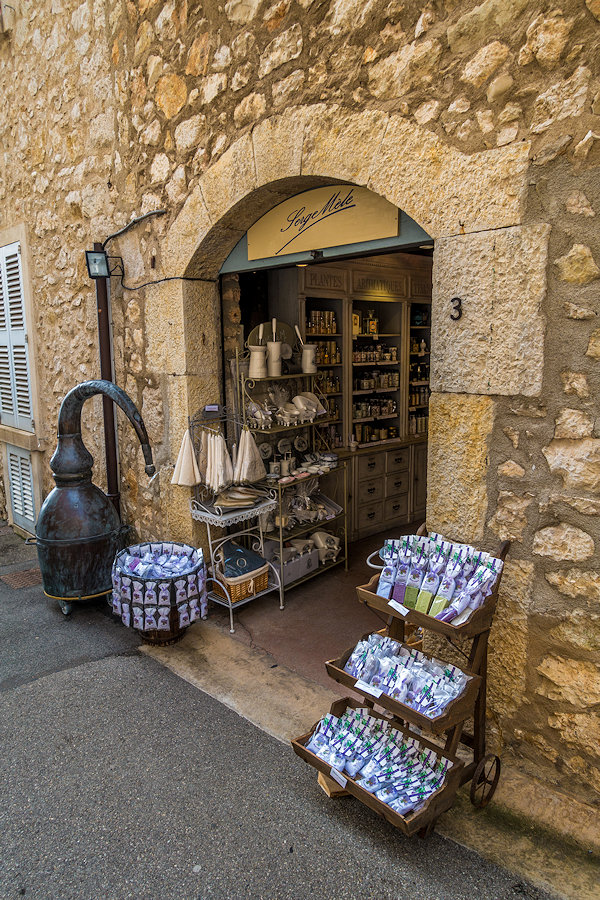 Ellers er byen full av små butikker og restauranter. Om det fortsatt lages parfyme i byen vet jeg ikke, men det kan ihvertfall se ut til til at de har gjort det tidligere, da det stilles ut eldre utstyr for slik produksjon i gatene av Gourdon. Det var nok litt kjøligere her oppe i høyden i Gourdon enn hva vi har opplevd tidligere på turen i Frankrike, men jeg syntes ikke det var none grunn til å «hutre og fryse». Ei dame som mamma kjøpte noen bordbrikker av mente det bare var 5-6 varmegrader og hu syntes det var bikkjekaldt. For franskmennene er dette kanskje veldig kaldt, men for oss som kommer fra Norge, så er dette ingenting. Men dette var ihvertfall en av de dagene hvor jeg hadde på meg jakka i tillegg til hettegenseren. Greit å ha noe vindtett utenpå genseren når det er «litt kjøligere».