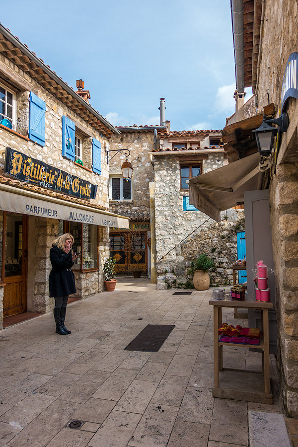 Vi gikk litt rundt i Gourdon og de små bakgatene skjuler den ene butikken og restauranten etter den andre. Ved kirketårnet inne i byen hadde jeg forventet å kunne komme inn i kirken, men der viste det seg bare å være toaletter. Vi var i Gourdon en halvannen times tid og avsluttet med å sitte på en krakk rett ved fontenen ved inngangen til byen og spise «småkaker» og drikke litt. Kaka som vi kjøpte viste seg å være mye hardere enn vi regnet med, så det var om å gjøre å passe på tennene. Men det smakte og det var godt å få litt i magen igjen. Før vi dro videre til neste destinasjon for dagen som er Grasse. En by jeg aldri har vært i tidligere. De lå såpass tett på hverandre, så det var naturlig å ta turen innom når man først skulle til Gourdon.
