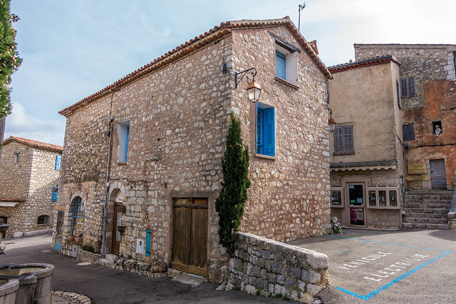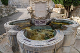 Torsdag gikk turen til fjellandsbyen Gourdon. Byen ligger 760 meter over havet og har 413 innbyggere (2013). Min første tur til Gourdon var i 1996, derfor hadde jeg lyst til å ta en ny tur til den bitte lille byen nå 20 år senere. Byen har en flott utsikt, spesielt sydover mot den franske rivieraen og dalen Loup. Denne plasseringen har gitt den kallenavnet «Ørneredet». Man kan fra Gourdon se de karakteristiske pyramideblokkene som ligger nede i havna i Villeneuve-Loubet. Har man med seg en kikkert er det ganske mye å se på også. Men det er ikke lengre unna pyramideblokkene at man kan se det med det blotte øye. Noe av det første man møter når man kommer til Gourdon er fontenen ved inngangen. Den er fra 1852 og er dedikert til minne om Jean-Louis Cavalier som hadde etterlatt seg 20.000 franc for bygging av en fontene i Gourdon i hans testamente datert 18.07.1847.