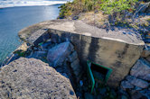 Like i nærheten av bunkeren for maskingevær er det murt opp en mur med nisjer i. Men denne betongen ser eldre ut enn bunkeren for maskingevær og bunkeren for rekylfri kanon. Kanskje dette er betongrester fra tyskerne var der under andre verdenskrig? Jeg vet at tyskerne bygde en nærforsvarstilling for maskingevær på Kalleraodden, som jeg nevnte i artikkelen om bunkeren ved Kråkerøy kirke. Men jeg var ikke klar over at de hadde bygget noe slikt på Alshus også. Men dette kan kanskje ha vært i sammenheng med patruljebåten som lå fast på Alshus? Det var kanskje her den lå fortøyd? Nærforsvarstillingen for maskingevær på Kalleraodden har jeg bare sett på gamle bilder. Det norske forsvaret bygde tilsvarende bunkere som på Alshus på nettopp Kalleraodden. Men disse har dessverre blitt revet, dette skjedde en gang i 2008 eller 2009. Jeg antar at nærforsvarstillingen for maskingevær fra krigens dager forsvant samtidig. Men jeg har ikke undersøkt dette nærmere. Jeg har bare vært en tur nede på brygga og tatt en sett området på litt avstand.
